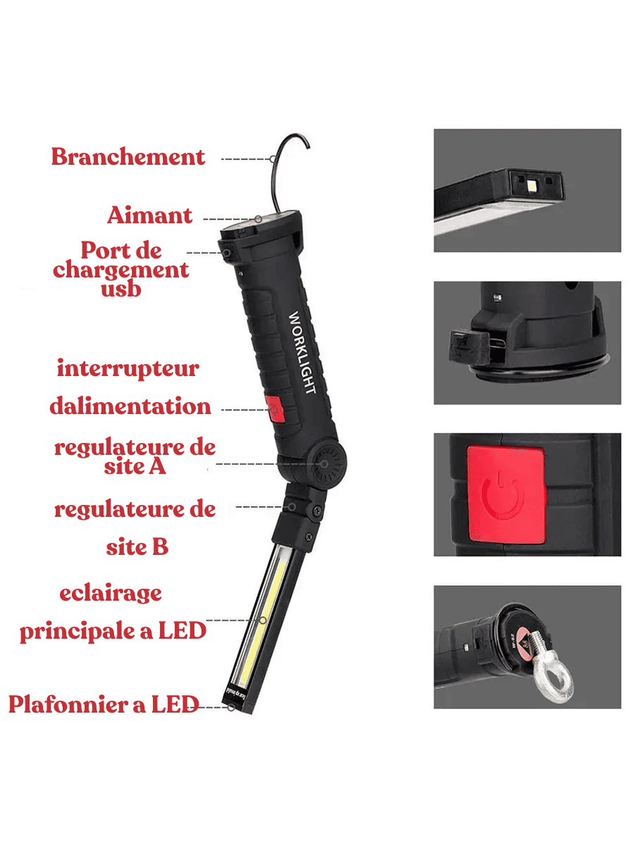 Lampe de Travail LED Pro 360° : Rechargeable & Magnétique
